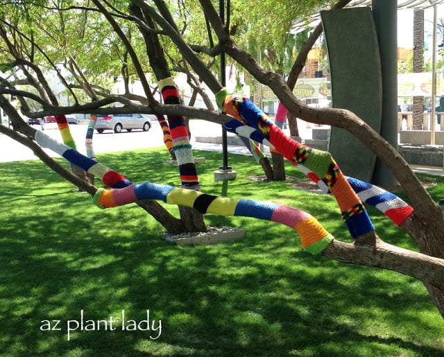 No, my eyes weren’t deceiving me. These trees had knit scarves covering parts of their trunks.