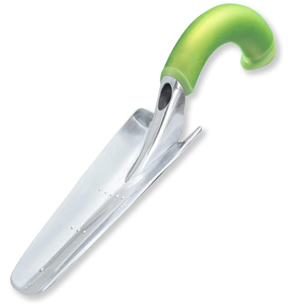 My mother introduced me to this useful tool on my shelf several years ago. Soon after, I ditched all my other hand shovels because this one was far superior. The narrow shape of this Ergonomic Alumunium Hand Transplanter/Shovel makes it great for adding flowering annuals into pots. I also use it in my vegetable garden for transplants, as well as creating furrows for seeds. Another bonus is that its handle is comfortable on your wrist and comes in other bright colors – I have a blue one.