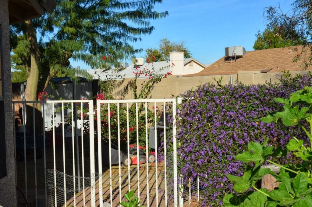 Another purple lilac vine grows along the fence, which hides part of the side yard and a large ‘Desert Museum’ Palo Verde provides welcome shade.